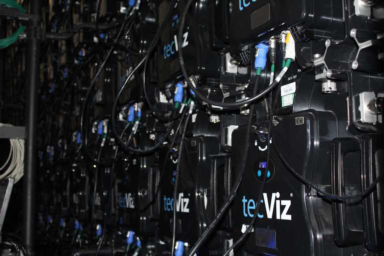 Новшеством в оформлении стенда было появление огромного монитора — во всю стену (12 метров в длину и 4,5 м в ширину), на котором постоянно показывались видео с живописными видами Молдовы, виноградников и виноделен. Специально для этого была построена конструкция, состоящая из множества небольших мониторов. Я заглянула внутрь неё.